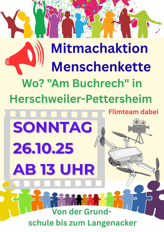 “Langenacker”, ein starkes Zeichen setzen: Gemeinsam mit allen Nachbarn, Freunden und der Familie bilden wir eine große Menschenkette durch Herschweiler-Pettersheim.